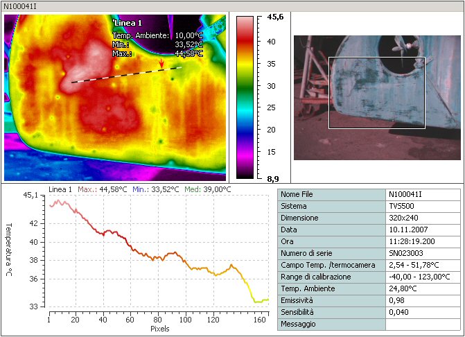 Dopo qualche ricerca su internet e una prova di ripresa su imbarcazioni in cantiere sto mettendo appunto un sistema per la valutazione termografica di uno scafo in vetroresina o in legno.